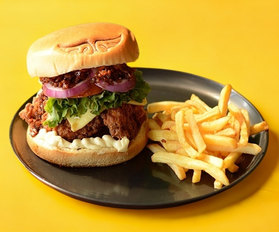 NUESTRA DELICIOSA RECETA SECRETA DE CARNE A LA PARRILLA CON ESPECIES, PAN BRIOCHE, QUESO MANCHEGO, TOCINO, MAYONESA ESPECIAL, LECHUGA ITALIANA, JITOMATE, CEBOLLA MORADA, JALAPEÑOS Y ACOMPAÑADA DE 70 GR DE PAPAS A LA FRANCESA.