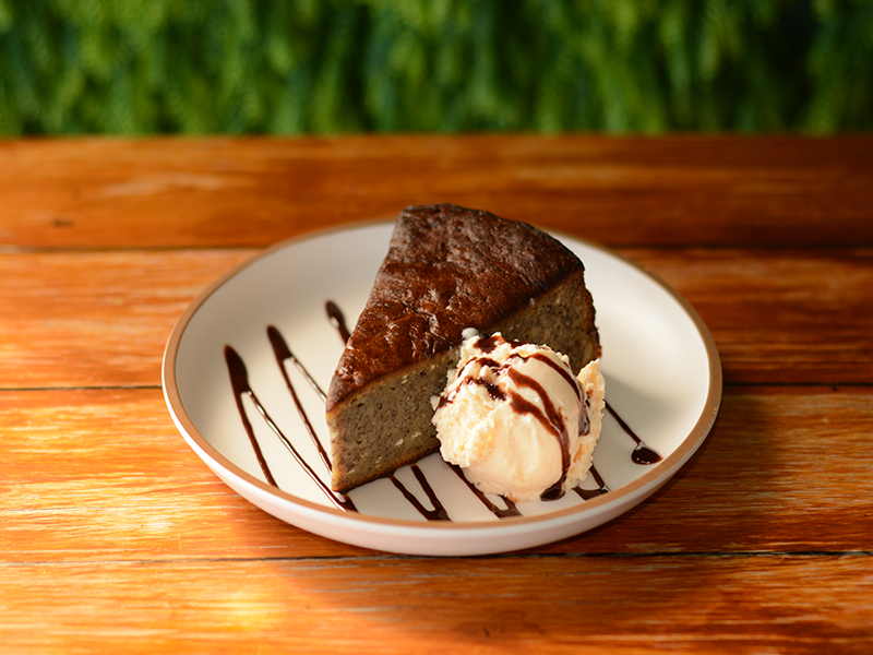 NUESTRO FAMOSO PASTEL DE PLATO HECHO EN CASA, SÚPER ESPONJOSO. ACOMPAÑADO DE UNA BOLA DE HELADO DE VAINILLA.