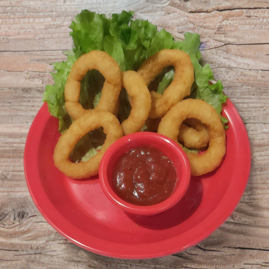 6 PIEZAS APROXIMADAMENTE 112 GR DE AROS DE CEBOLLA DULCE, ACOMPAÑADOS DE SALSA DE TOMATE CONTADINA. I