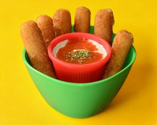 6 PALITOS DE QUESO SÚPER CROCANTES, ACOMPAÑADOS DE SALSA CONTADINA.