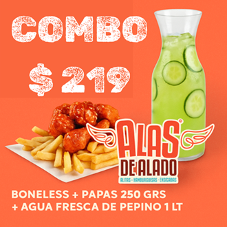 Boneless con Papas 250 g*1 + Agua Pepino con Hierbabuena Grande 1 L*1