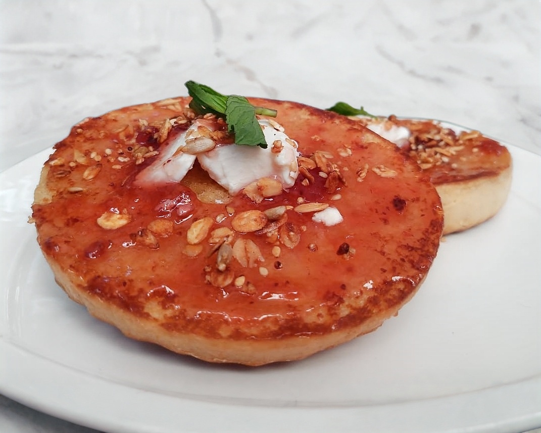 Orden de 3 crepas, preparadas con mermelada de fresa y queso crema.