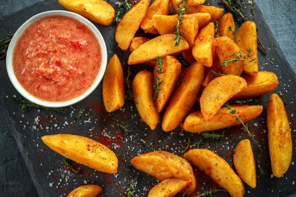 12 pza de Papas en gajo fritas en una cama de lechuga