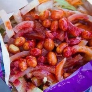 Doritos Nachos, zanahoria, pepino, jicama, cacahuate japones, cacahuate hot nut, cueritos de cerdo, chamoy, miguelito, gomitas, salsa valentina, limon
