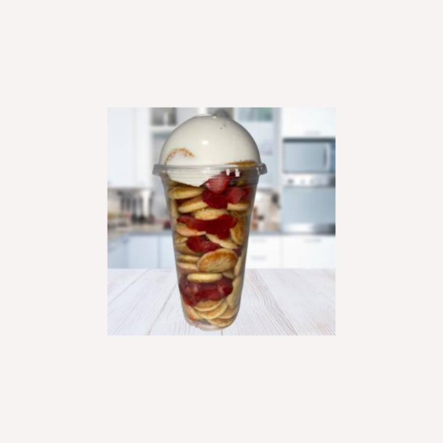 Vaso con Mini Hot Cakes Mermelada Fresa