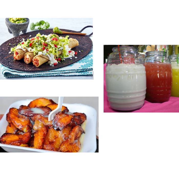 Tacos Dorados 20 cm.de Queso (1 pz.)*3 + Platano Macho Frito con Lechera*1 + Agua de Sabor 32 oz.*1