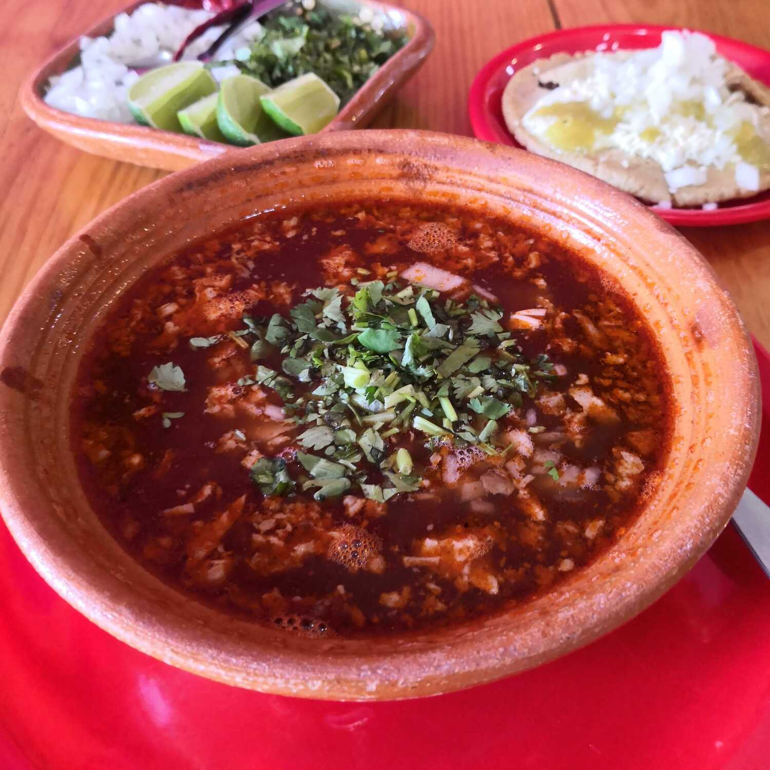 Pancita de res en caldo rojo de chiles secos. (560 ml)