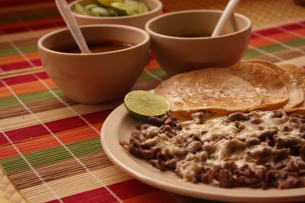 Bistec, pastor, jamón, queso y tortillas de harina.