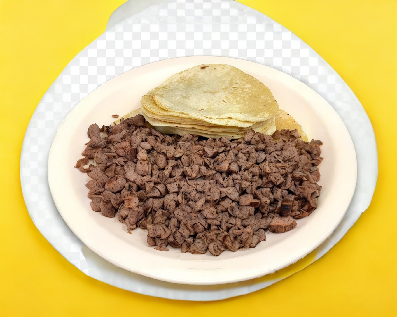 Porción de chuleta con 8 tortillas a un lado.