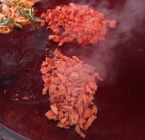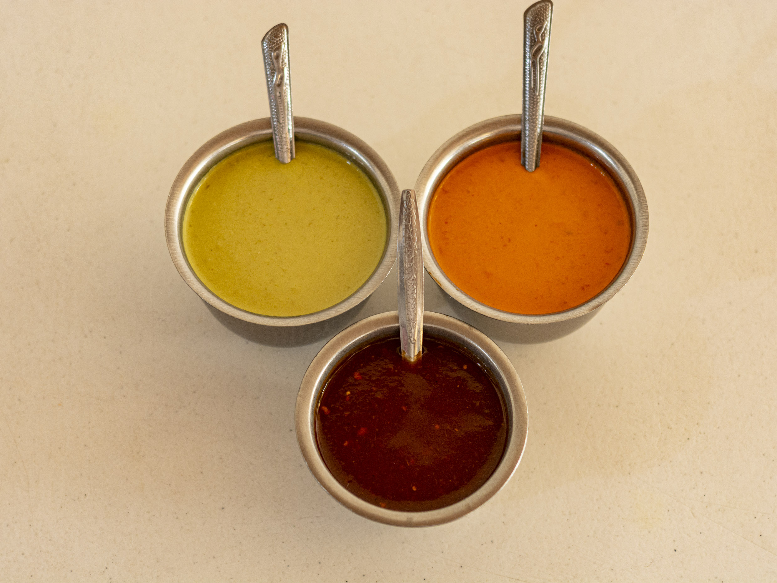 Bistec, chuleta, nopal, chile verde toreado, queso.