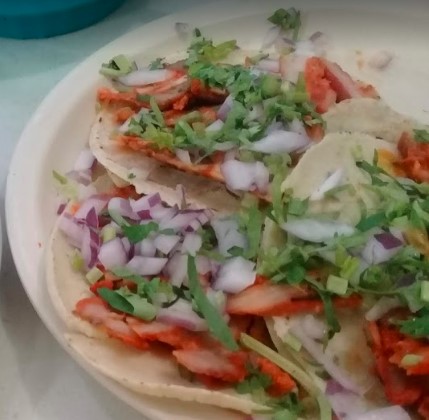 1 porcion Bistec, pastor, piña, jamón de puerco , tocino y queso manchego, 20 tortillas de maiz