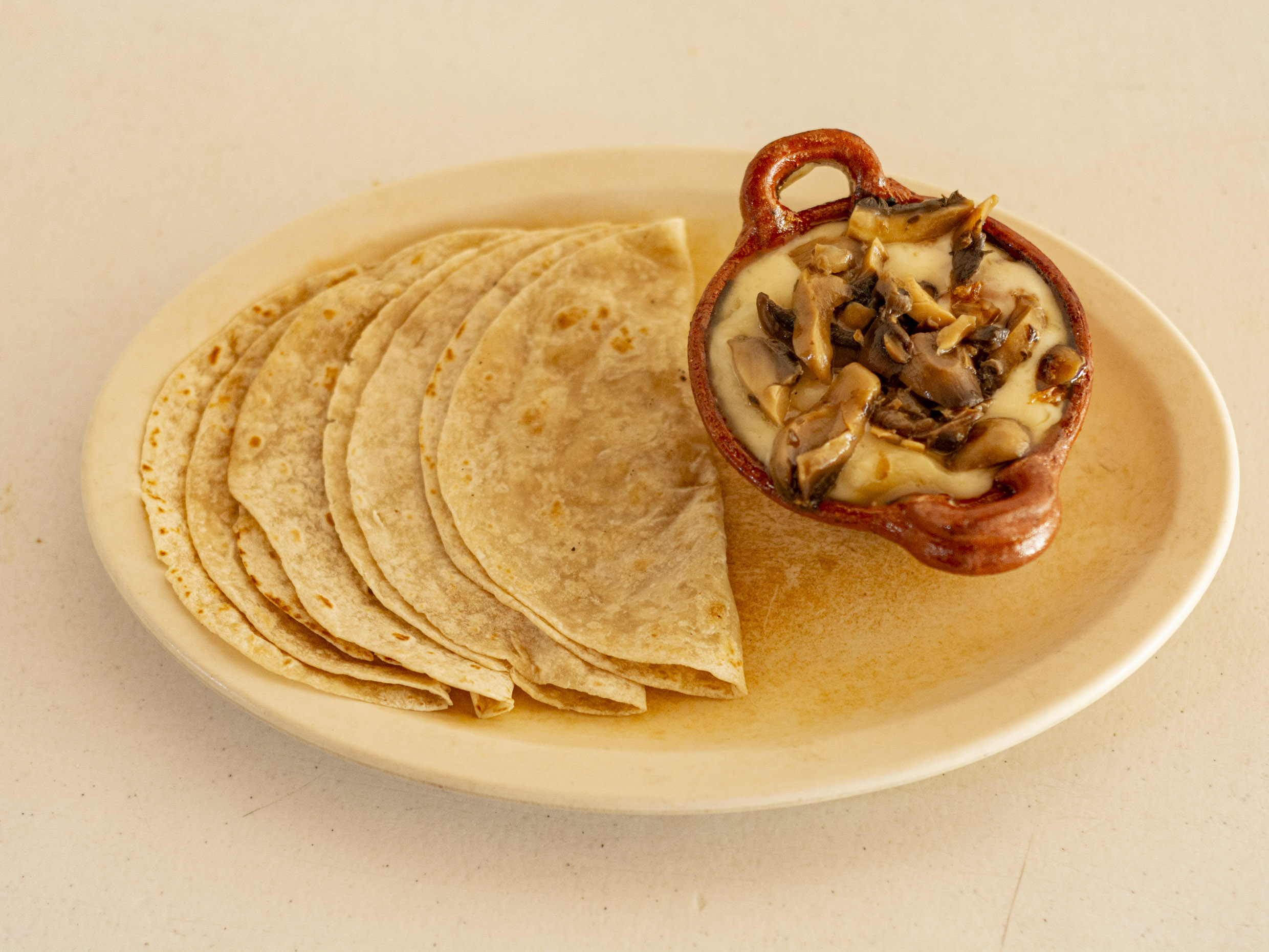 Queso fundido tipo manchego con 4 tortillas de harina.