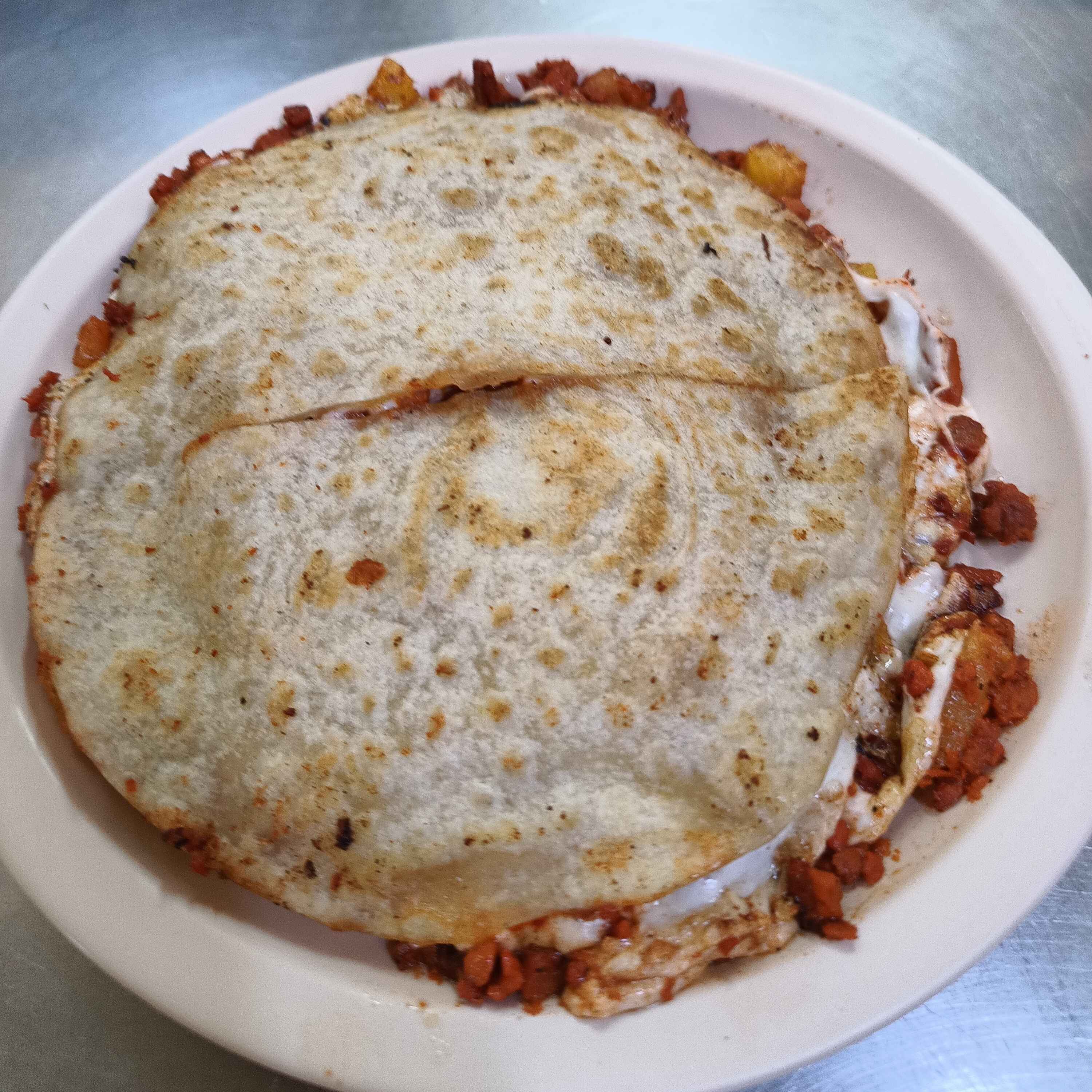 tortilla de harina pastor piña queso oax