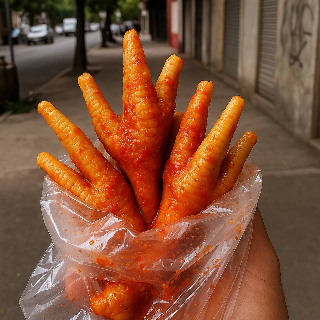 Deliciosas patitas de pollo hervidas acompañadas con salsa Valentina, limón y un toquecito de sal