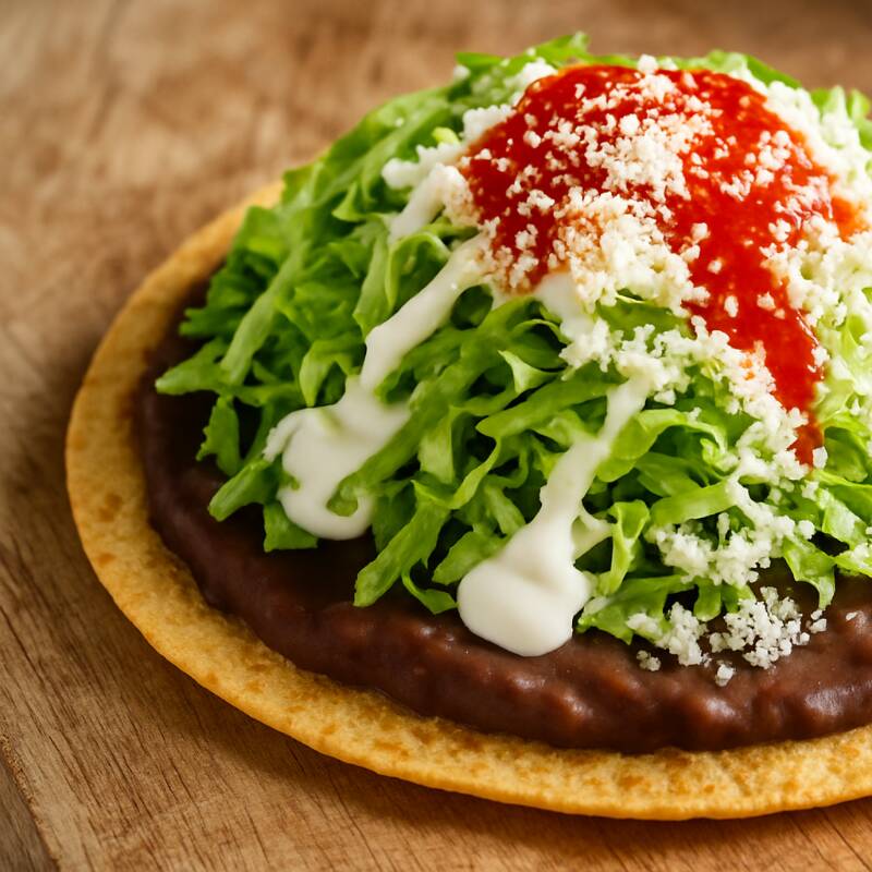 Tostadas con frijolitos, base de col o lechuga, crema, queso y salsa. Escoge tu topping de pata, tinga o sencillas