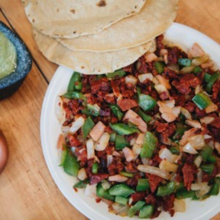 Bistec, tocino, jamón, pimiento, piña, carne enchilada y queso oaxaca. incluye tortillas y salsa taquera