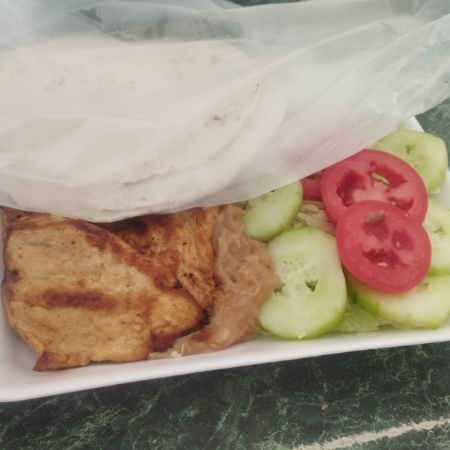 Pechuga Asada, Ensalada y Frijoles.