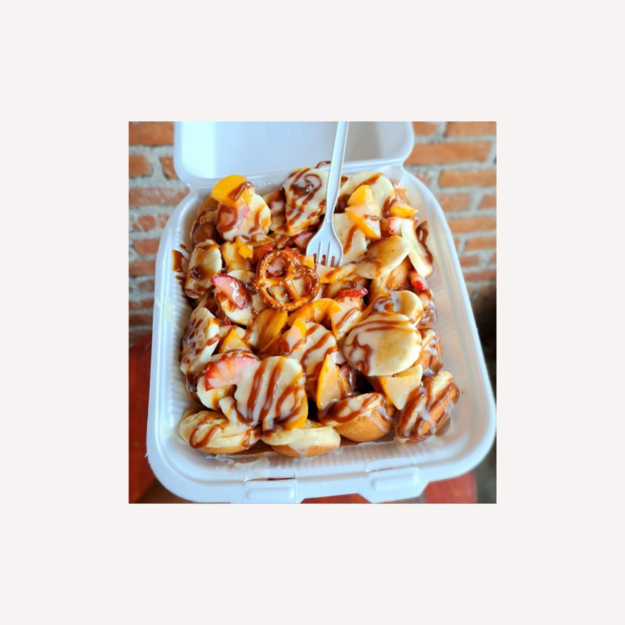 Vaso con 20pz. Mini Hotcakes y leche condensada