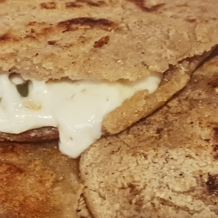 Es una doblada de queso oaxaca lleva queso, crema y salsa