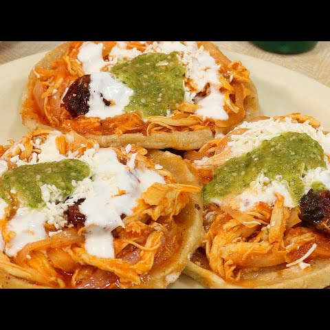 Gordita de Tinga de Pollo incluye queso, crema y salsa