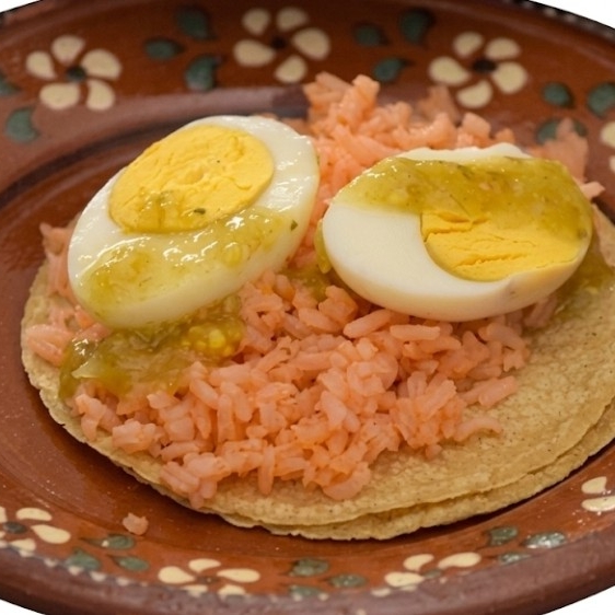 3 TORTILLAS HECHAS A MANO, ARROZ Y HEVO