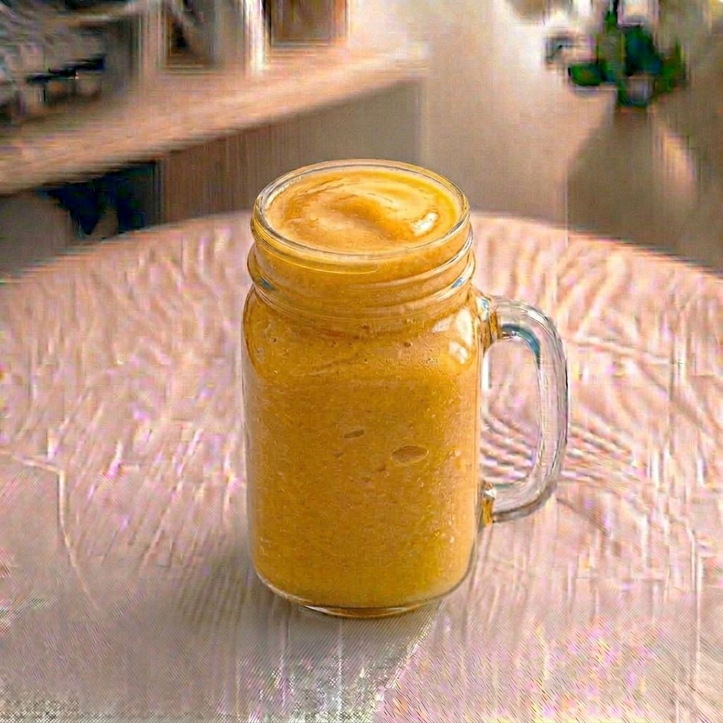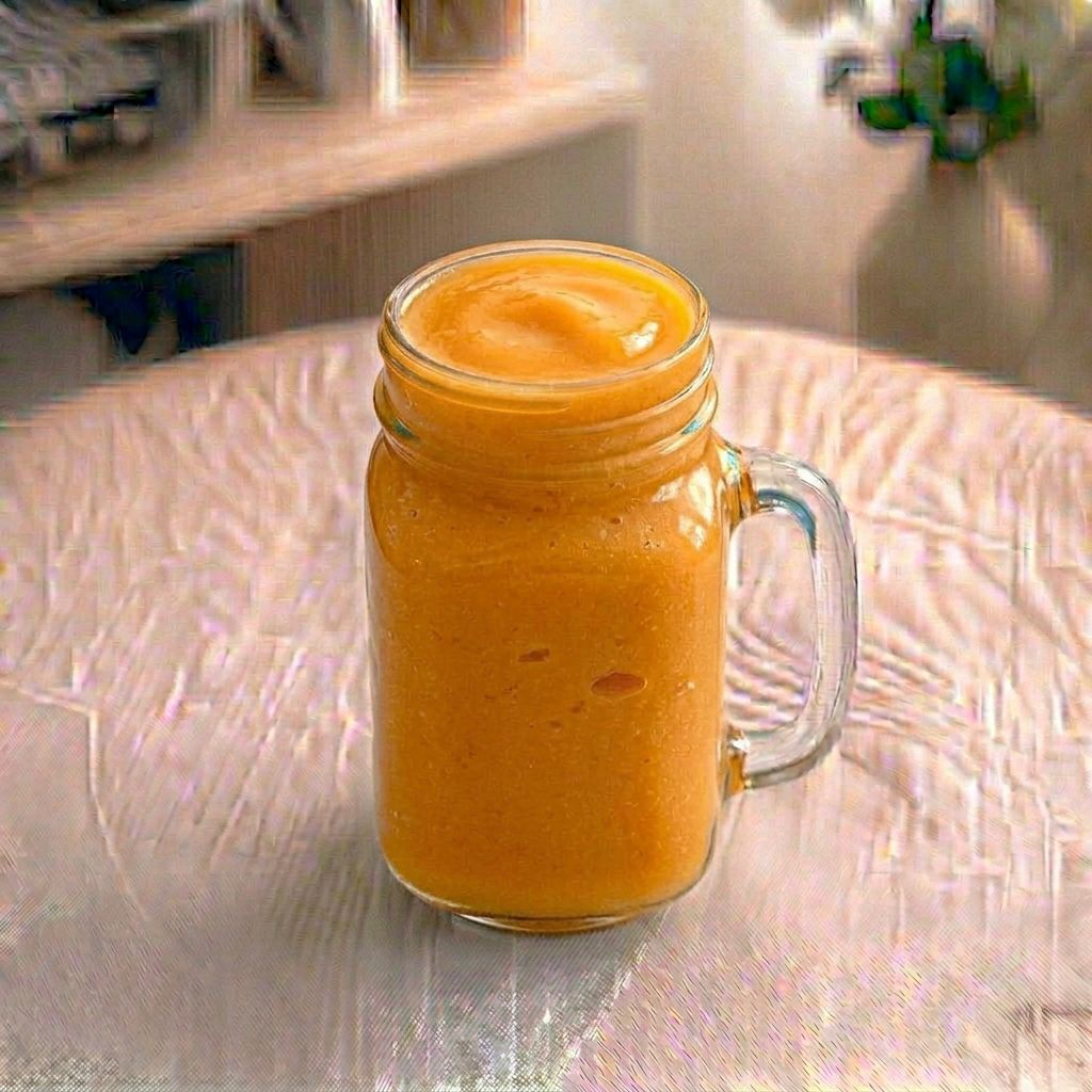 Delicioso smoothie de mango natural licuado con hielo, fresco, dulce y refrescante