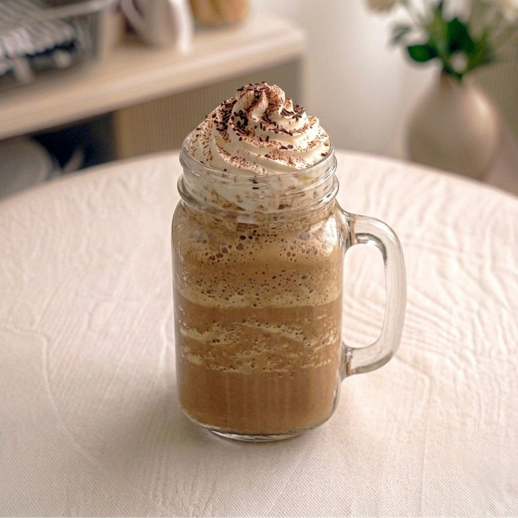 Delicioso frappé a base de nuestra mezcla especial de café con crema batida, con un toque de chispas turín