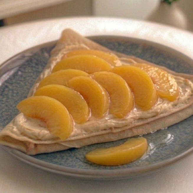 Deliciosa Crepa Philadelphia con rebanadadas de Duraznos en almíbar