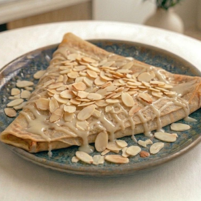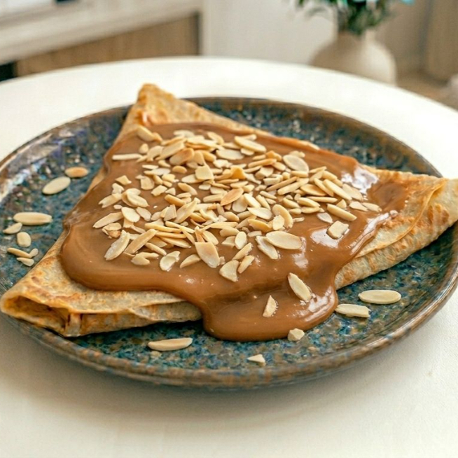 Deliciosa Crepa Lechera cubierta con una capa de Almendras