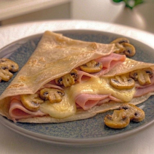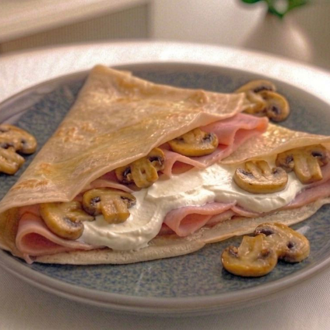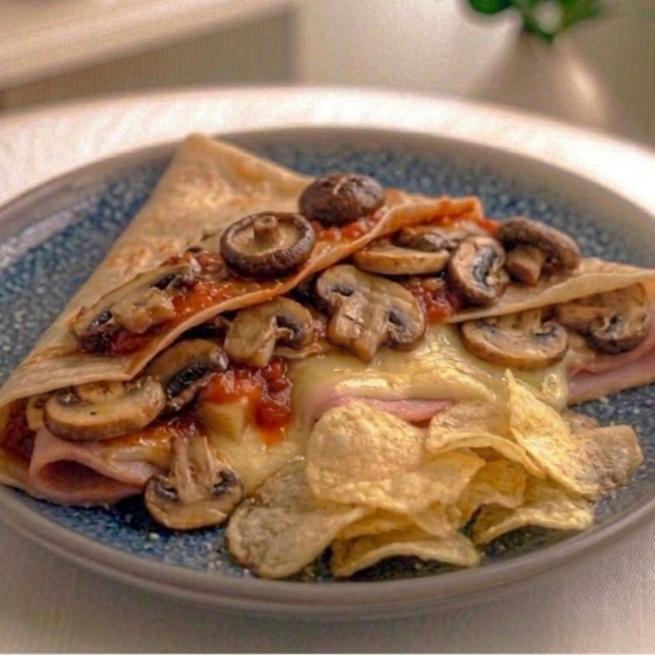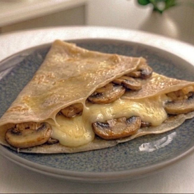 Deliciosa Crepa rellena de Queso Manchego y Champiñones