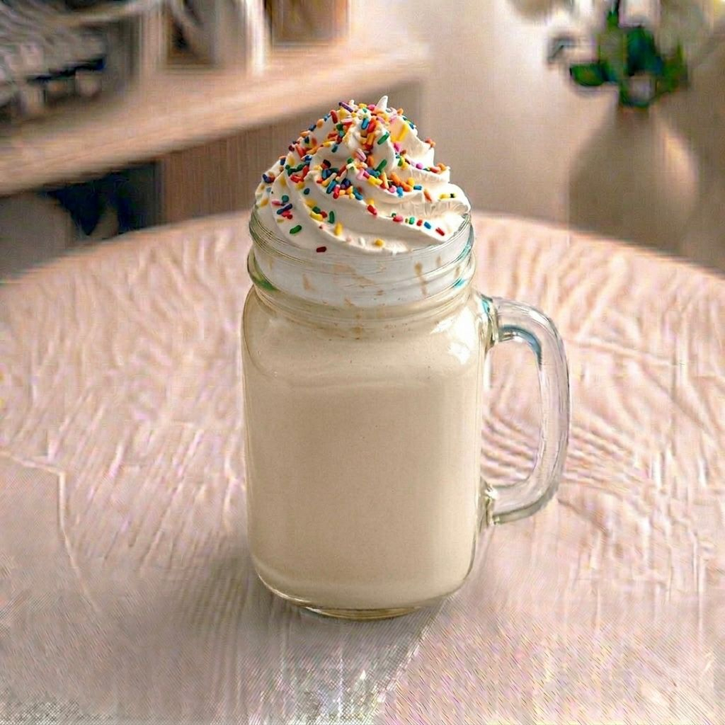 Malteada de vainilla, cremosa, fría y deliciosamente dulce.