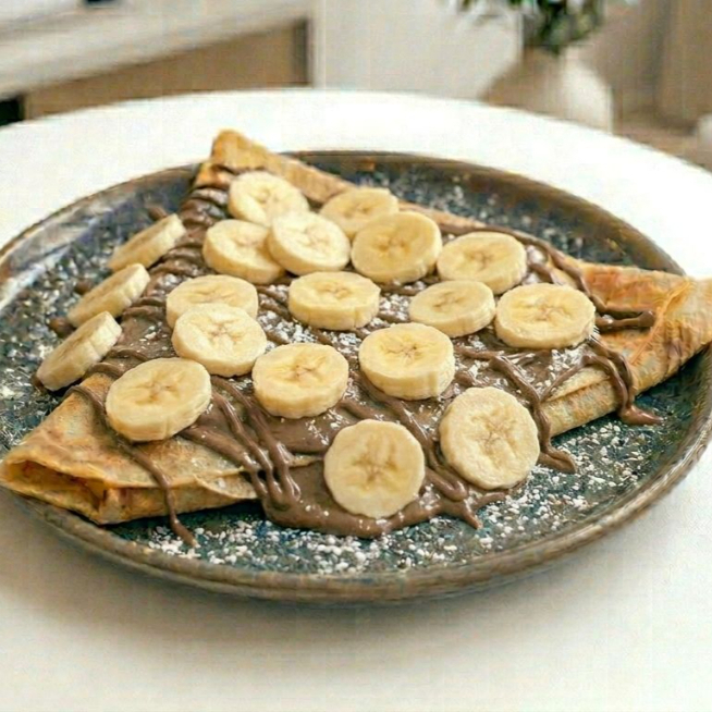 Deliciosa Crepa de Nutella cubierta con una capa de plátano en rodajas