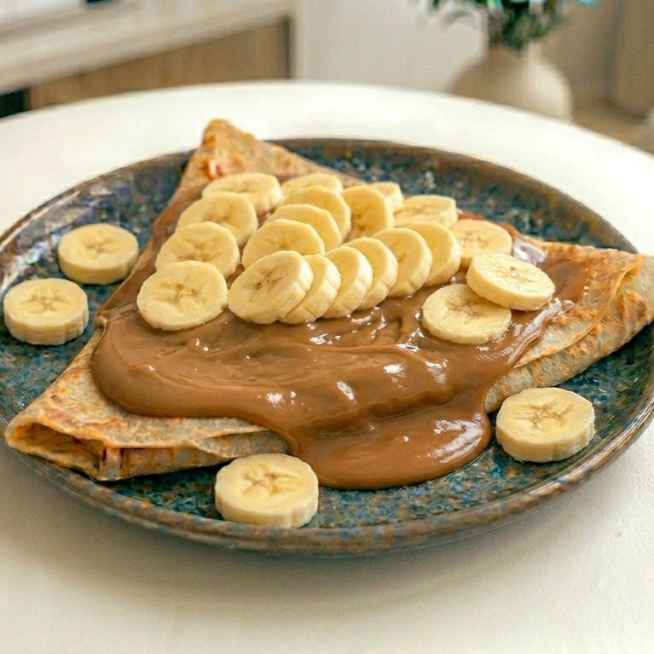 Crepa con base de Crema de Cacahuate, acompañada con plátano.