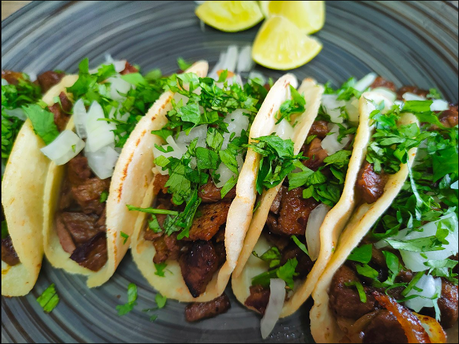 taco de carne de res con cebolla y cilantro