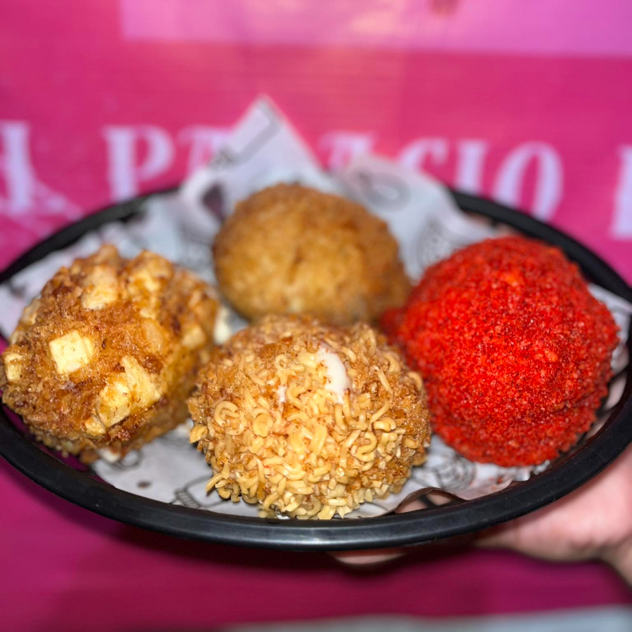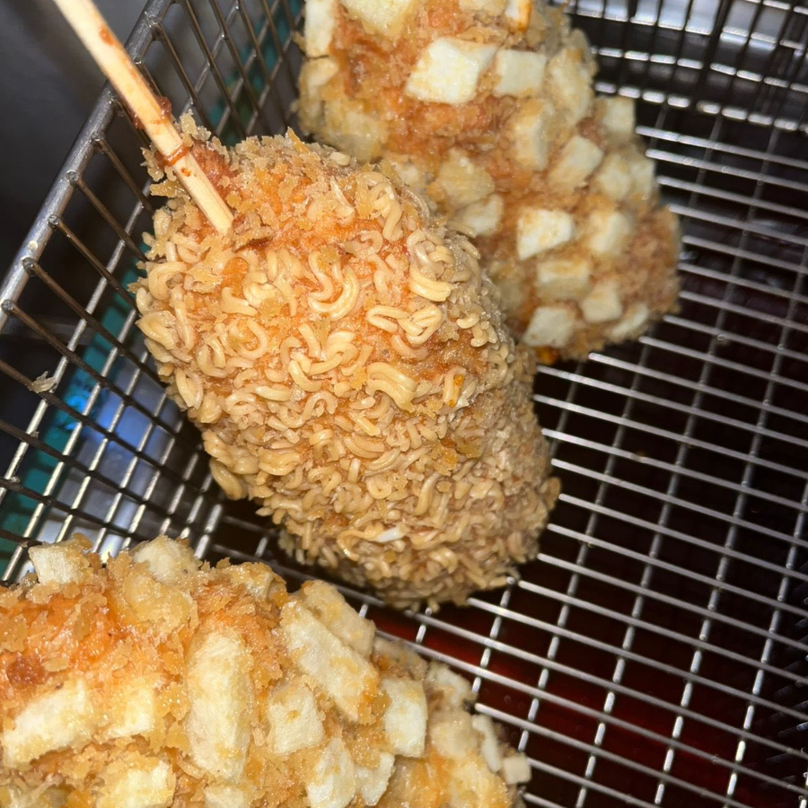Banderilla de queso mozzarella cubierta con Ramen FRITO