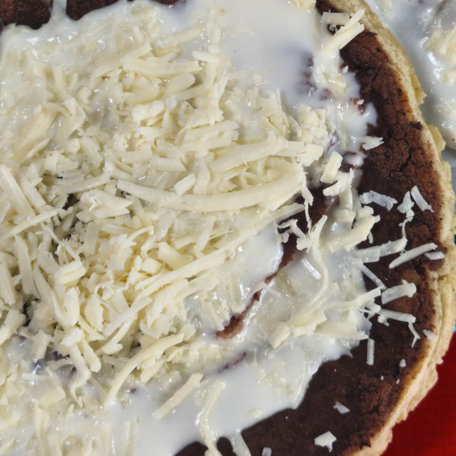 Frijol, salsa verde, verdura queso y crema.