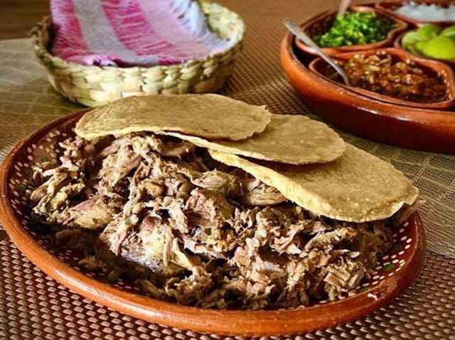con una pata de carnero o cabra y un toque de carne con 3 tortillas de maíz, arroz y garbanzo acompáñalo de su cebolla, cilantro, salsa al gusto y su limón