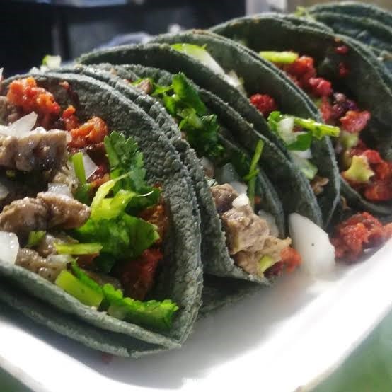 con carne , con 3 tortillas de maíz, acompáñalo de su cebolla, Cilantro, salsa al gusto y su limón
