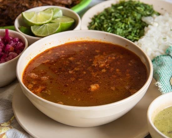 Jugo derivado de las carnes de los ovinos y caprinos, cocidas a fuego lento con condimentos secreto de la casa. Todos nuestros consomés incluyen ARROZ Y GARBANZOS bien cocidos, acompáñalo de su cebolla, cilantro, salsa al gusto y su limón.