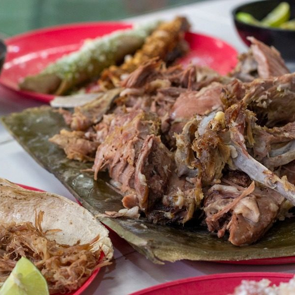 Jugo derivado de las carnes de los ovinos y caprinos, cocidas a fuego lento con condimentos secreto de la casa.