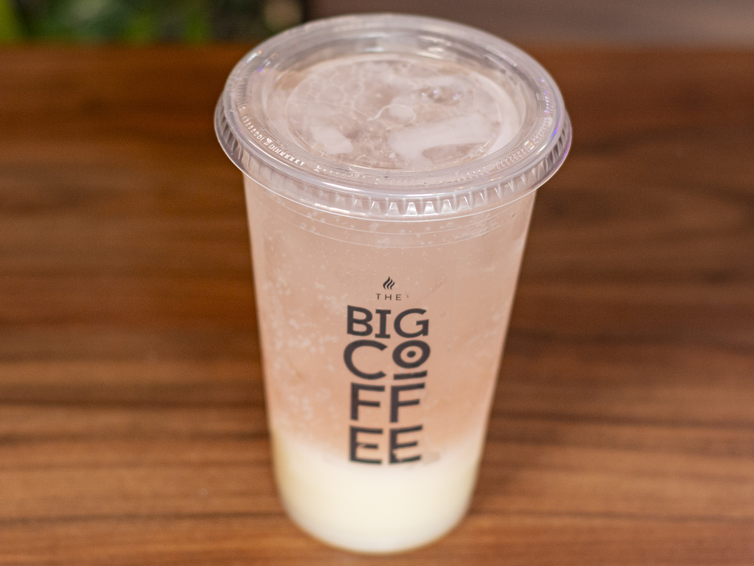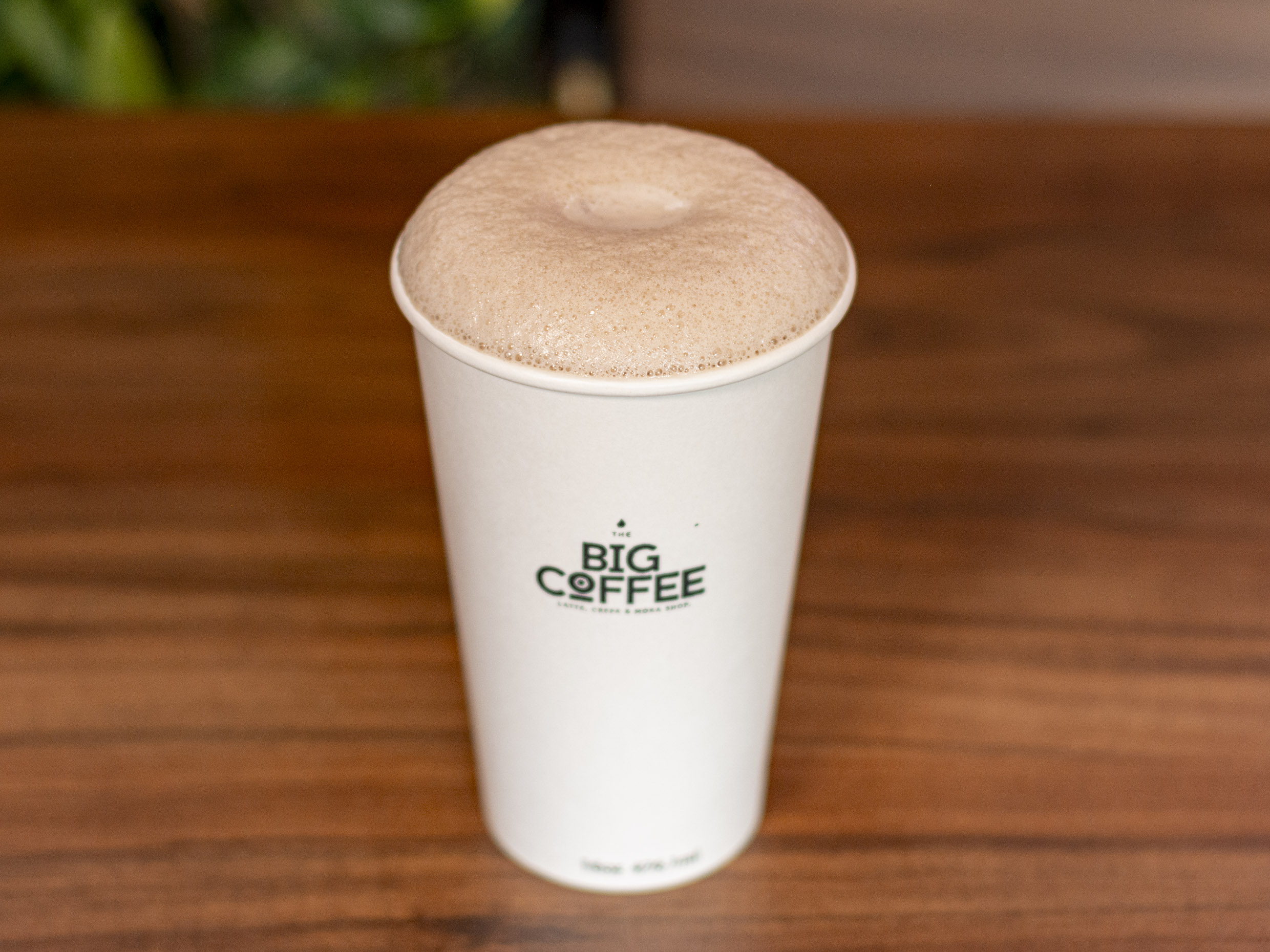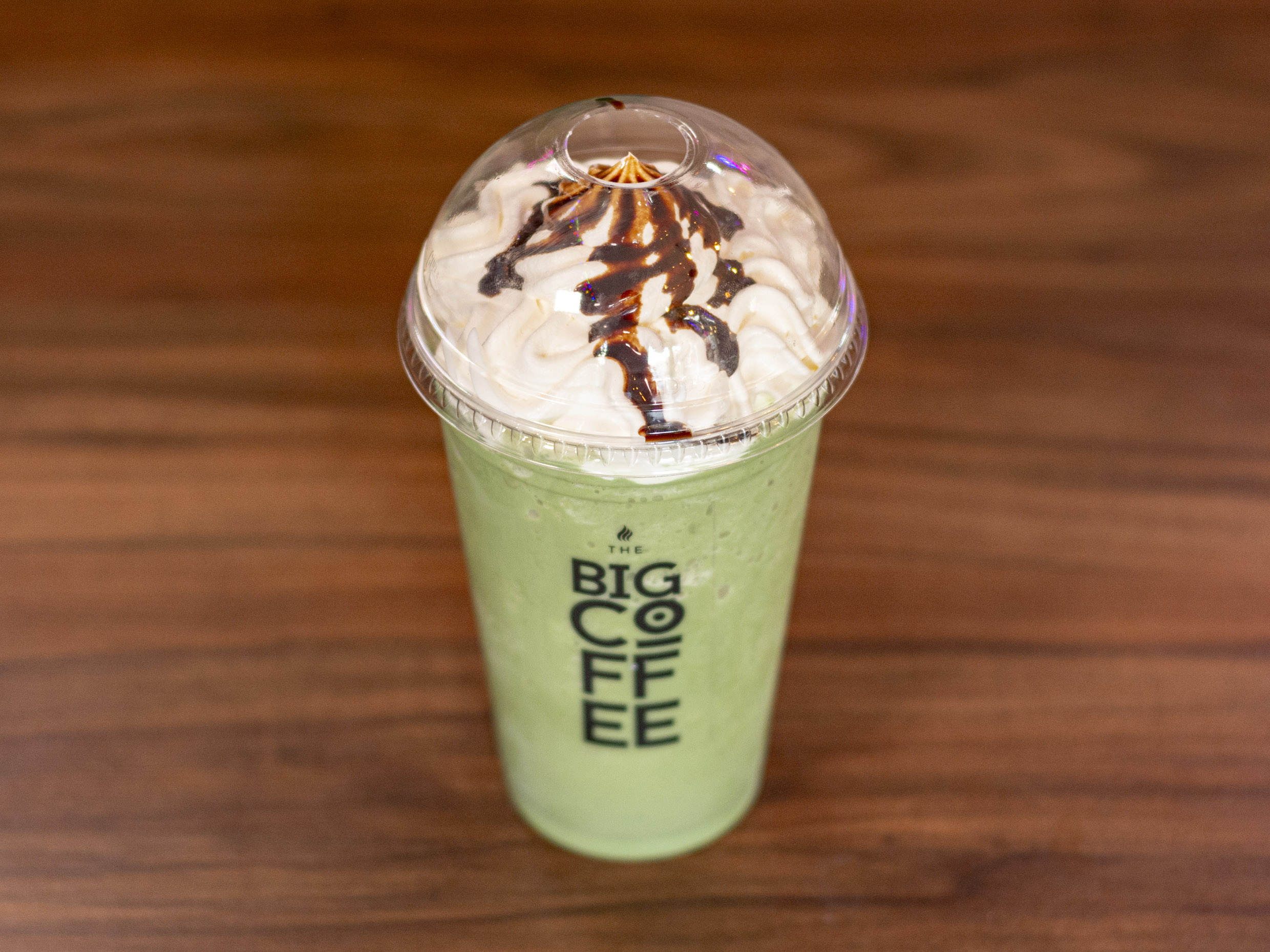 Frappé de café, mezclado con leche cremosa y salsa de caramelo, coronado con crema batida y un toque extra de caramelo