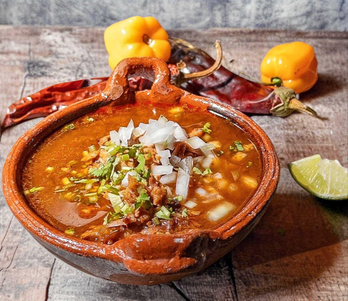 Un litro de delicioso consomé con una mezcla de maciza, chambarete y costilla de de res acompañados con cebolla, cilantro y 2 de nuestras tradicionales salsas.