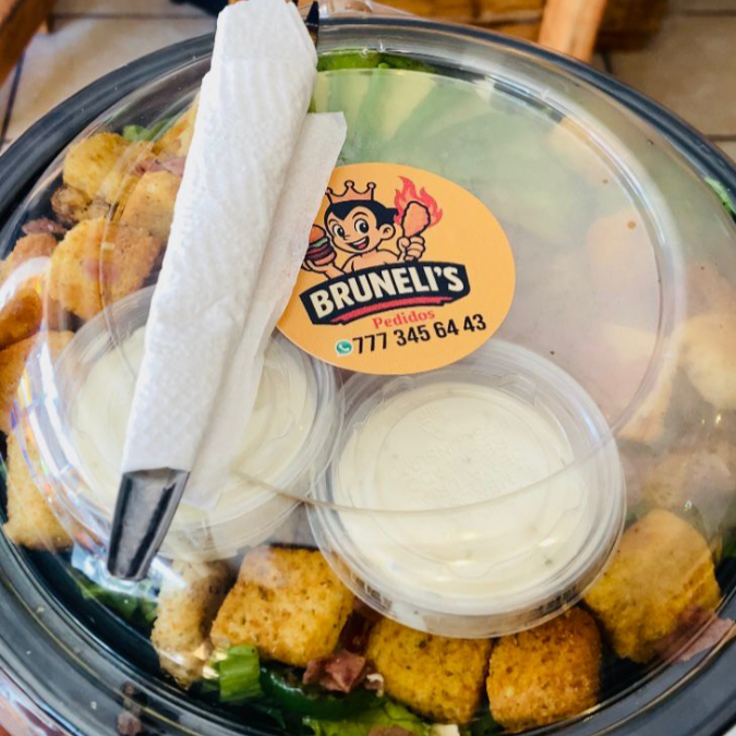 Ensalada con base de lechuga; pimiento, queso panela, nuez de la india, Aguacate, Tocino, Crotones, Pollo al grill o atún