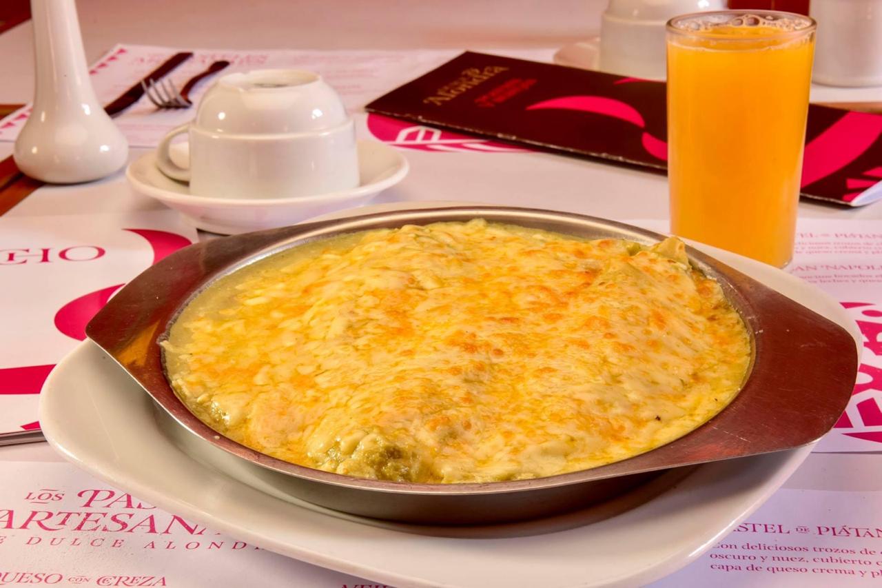 Verdes, rojos o de mole con pollo o huevo Todos los desayunos incluyen café y jugo de naranja o fruta.