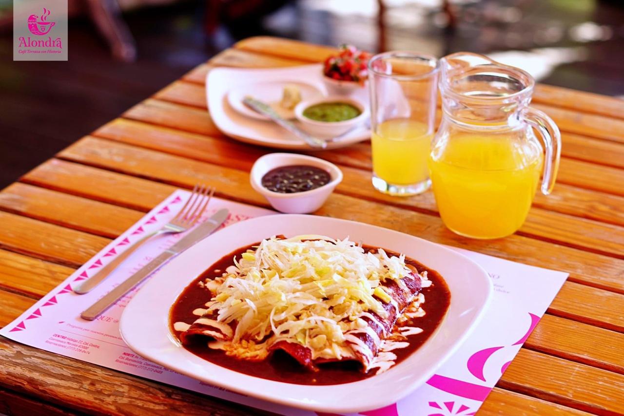 Verdes, rojas o de mole, rellenas de pollo, queso o huevo acompañadas de frijoles de la olla. Todos los desayunos incluyen café y jugo de naranja o fruta.