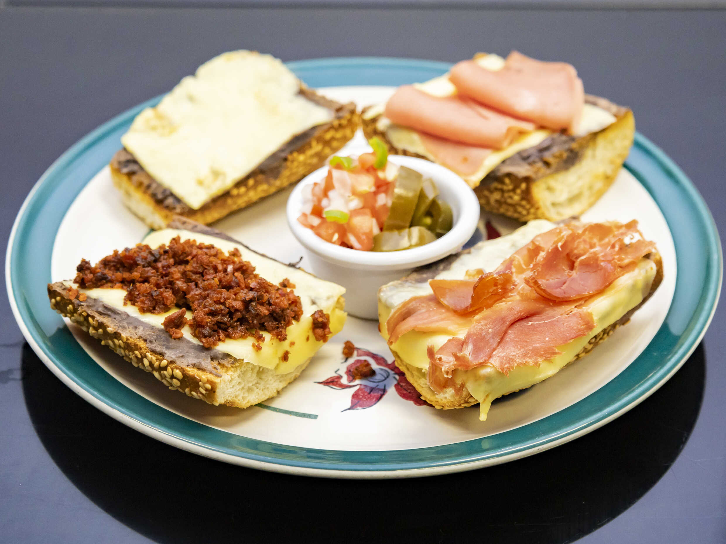 Servidos con queso manchego gratinado y un ingrediente de tu elección, acompañados de pico de gallo, guacamole, cuaresmeños y lechuga.