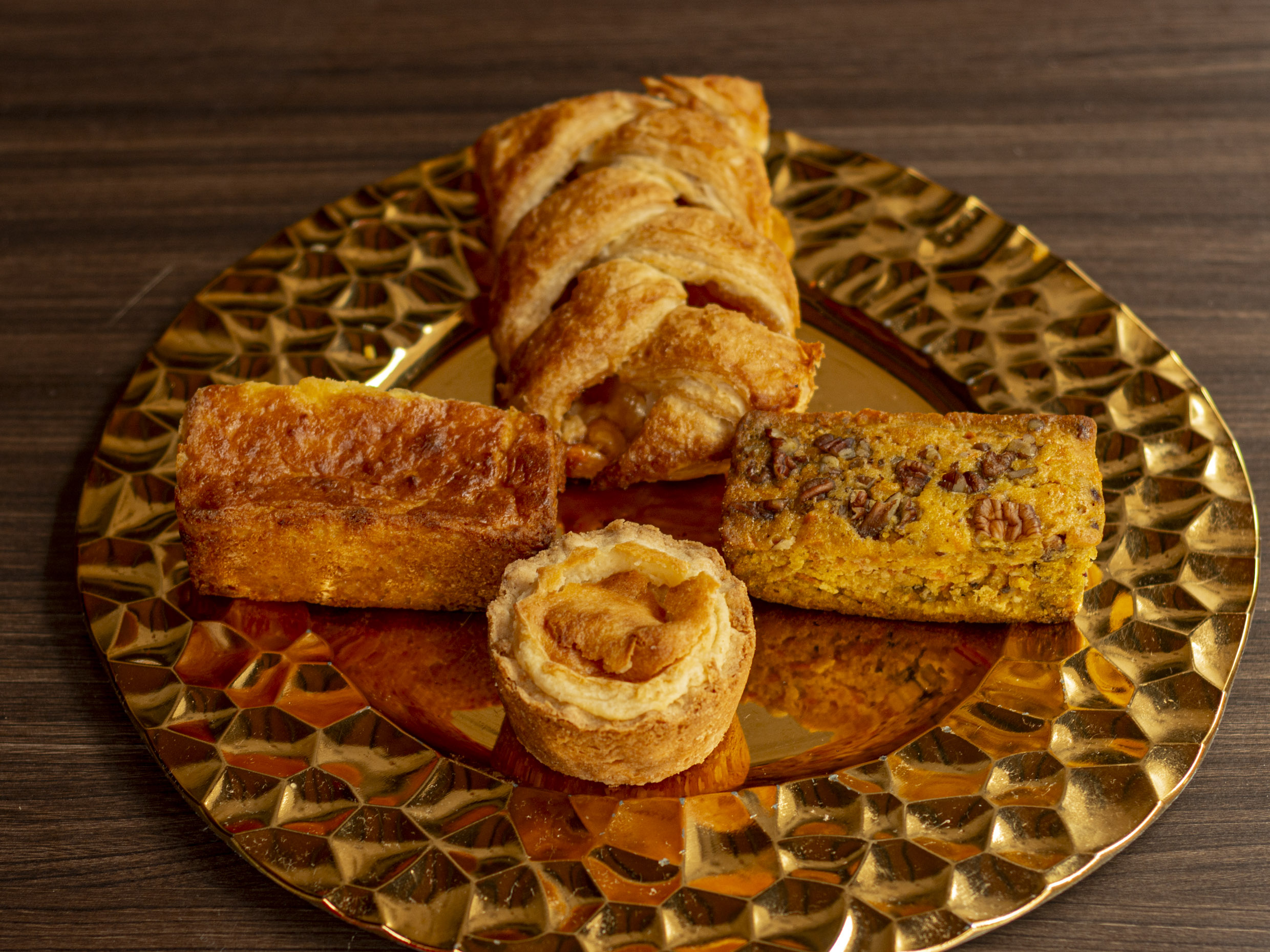Elige tu chipilicioso pancito dulce: muffin, trenza de manzana canela, cuernito de zarzamora y cuernito natural.