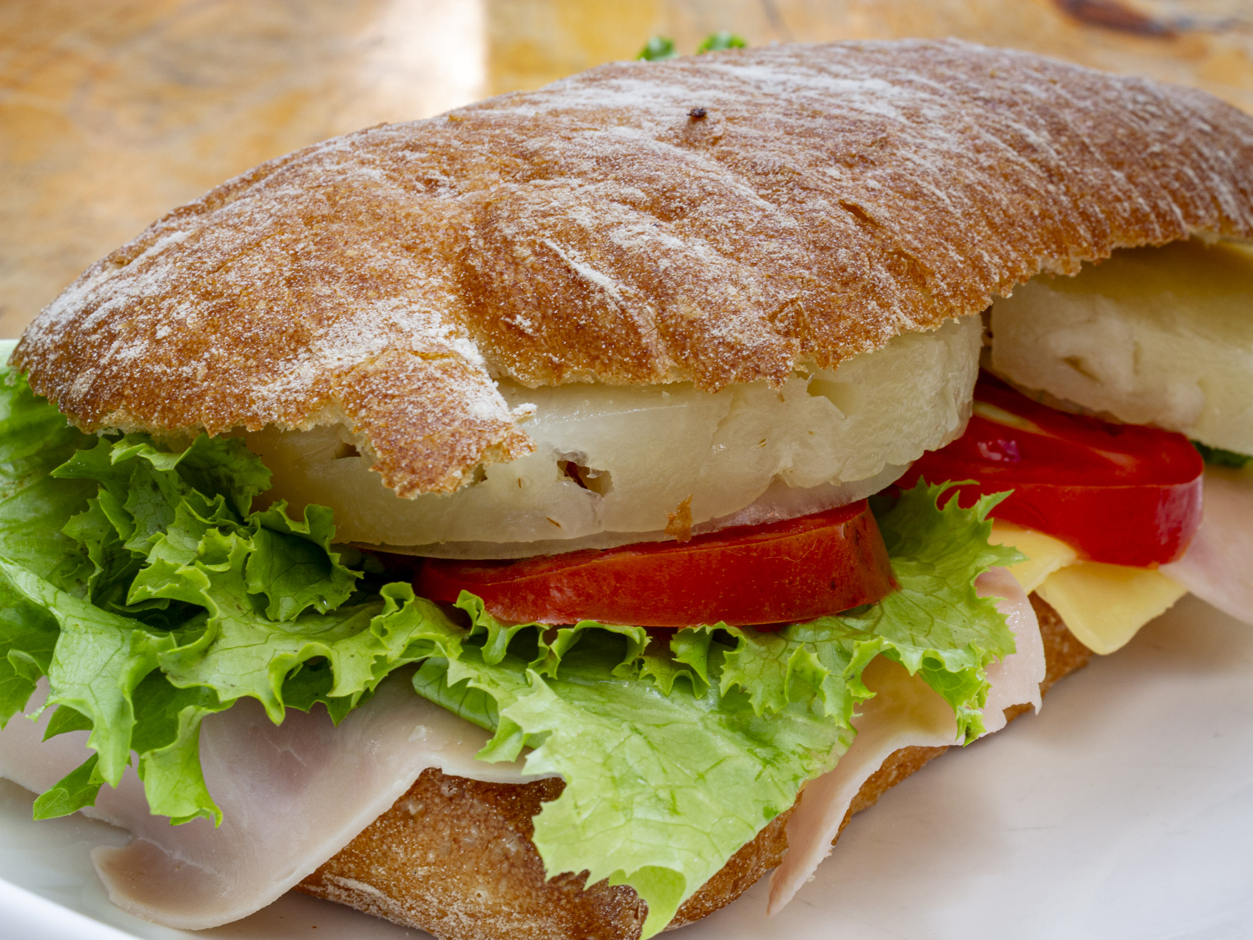 Jamon, pesto, queso panela, lechuga, jitomate y chiles