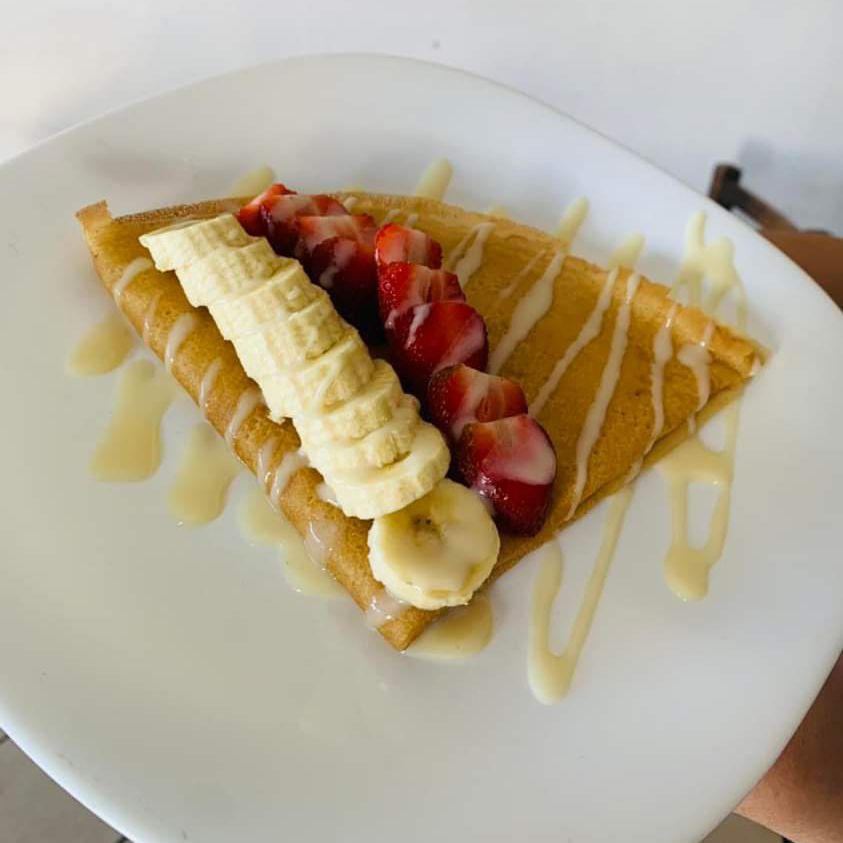 3 piezas de hotcakes de mapple o mermelada con fruta