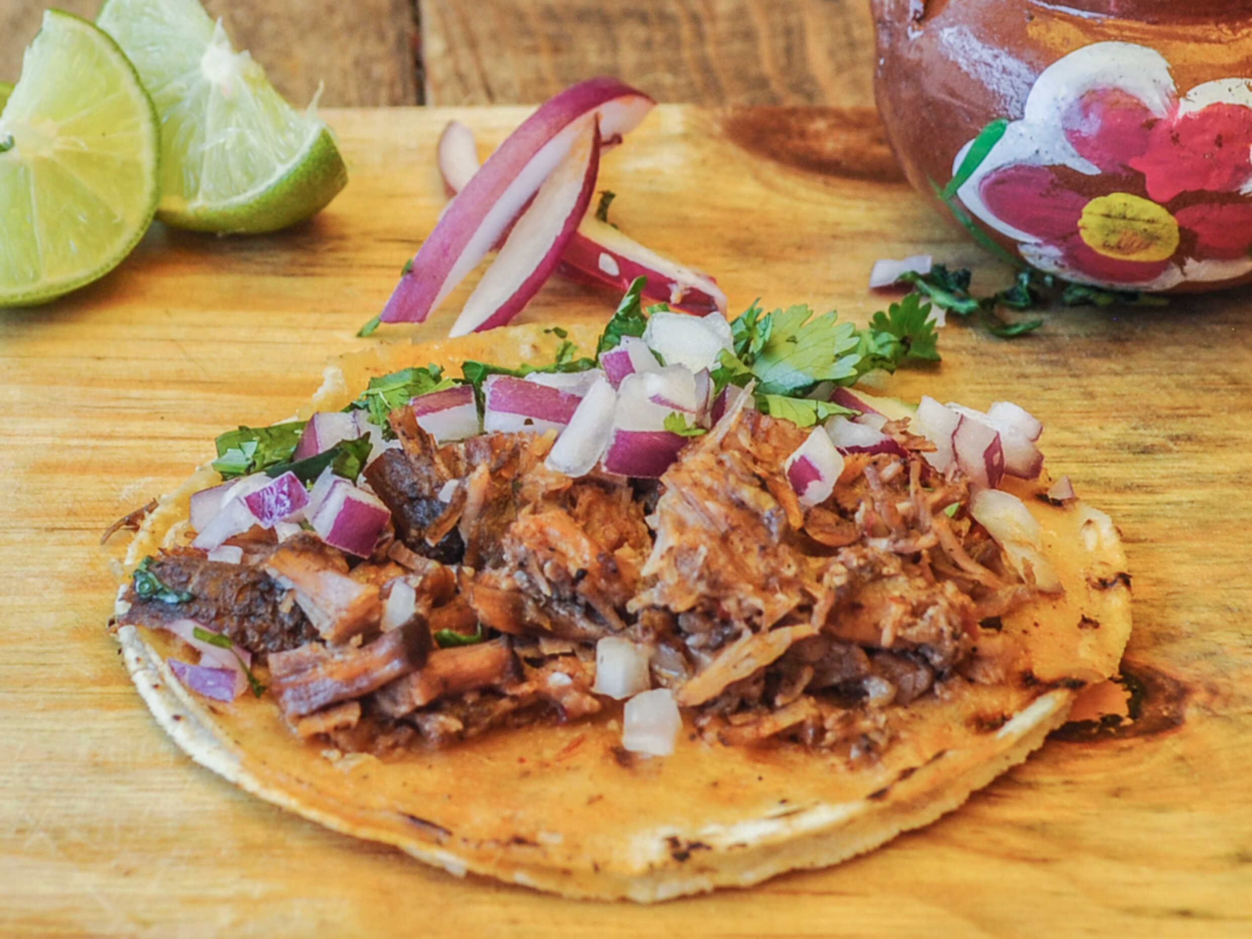 Tortilla de maíz del numero 12 dorada con queso, y 34g de carne aprox.